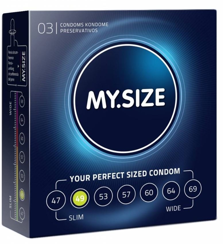 My.Size condooms 49 mm is een internationaal geregistreerd condoommerk van R&S Consumer Goods. MySize condooms zijn premium kwaliteit condooms van eerste klas puur, natuurlijk latex rubber en voldoen volledig aan de eisen van ISO 13485 voor medische hulpmiddelen. Er worden geen dierlijke producten gebruikt bij de productie en vervaardiging van MY.SIZE-condooms.